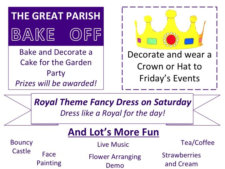 On Friday 3rd, Saturday 4th and Sunday 5th June the Parish is organising a series of events to helps us all Celebrate the Queen’s Jubilee.